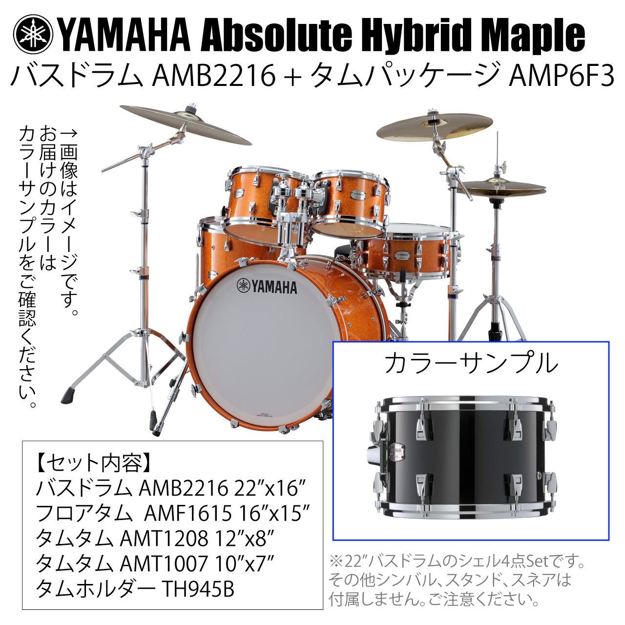 YAMAHA ヤマハ Absolute Hybrid Maple AMB2216 + AMP6F3 SOB 22インチバスドラム シェル4点セット~expressive drums~プレイヤーの表現力を最大化するドラム 22インチバスドラム シェル4点セット