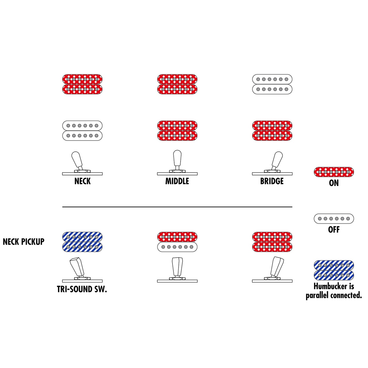 - ネック・ピックアップのサウンド・バリエーションを拡げる Tri-sound スイッチ搭載