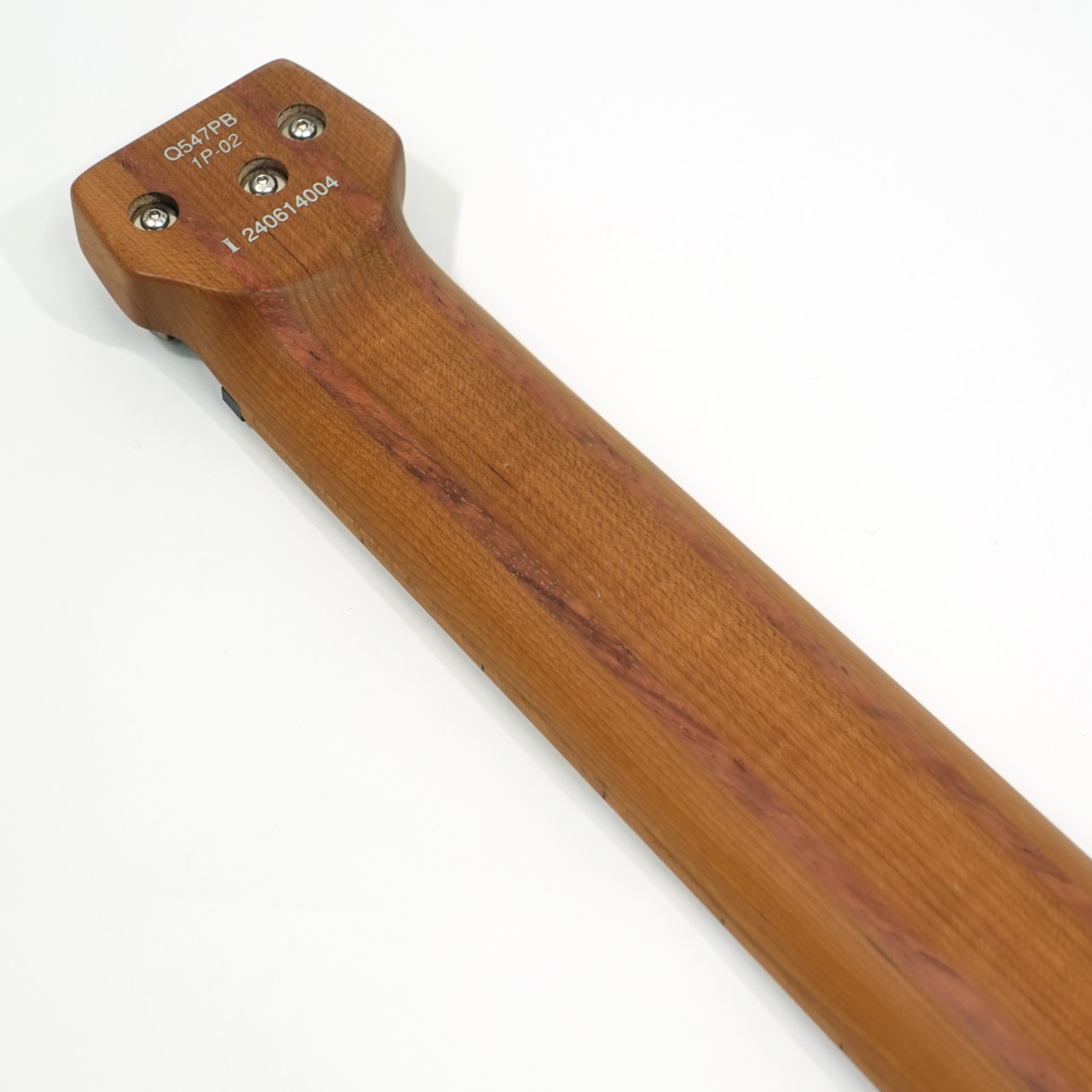 人間工学に基づいたコンターやカットが施された非常にコンパクトかつ軽量なナトーボディにエキゾチックな杢目のポプラバールをトップに採用。ネックシェイプは全長にわたり19mmのネック厚に統一した"Parallel Wizard Neck"に全フレットを8度角で均等にスラントしており、ギターを高い位置で構えた際のテクニカルなギタープレイにおいて驚くほどフィンガリングしやすい自然なプレイアビリティを実現しています。フレットにはジャンボステンレスフレットを採用し高い耐久性を持ちます。