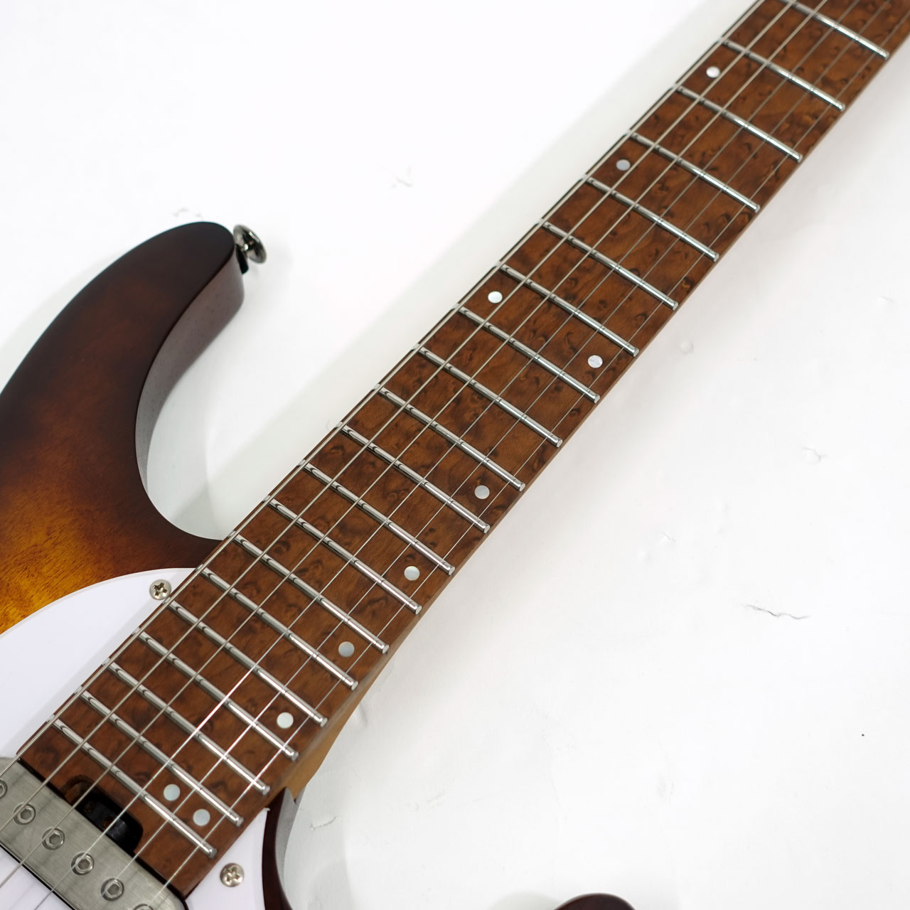 fretboard Roasted Birdseye Maple fretboard Mother of Pearl Step off-set dot inlay