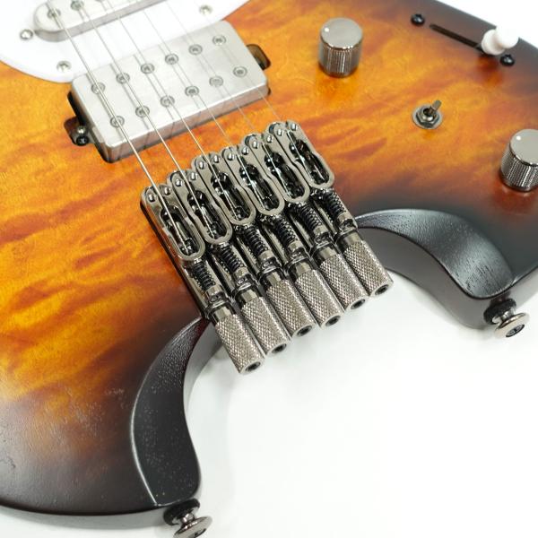 Qシリーズの為に新開発されたCustom String Nut,Mono-Tune Bridgeは弦の種類を選ばず使用でき、イントネーションの調整幅も広くダウンチューニングにも対応。サドルを構成している部品数を極力少なくし、ギター本体の鳴りが生きるナチュラルなサウンドを実現しています。