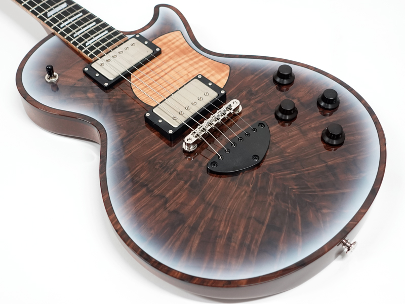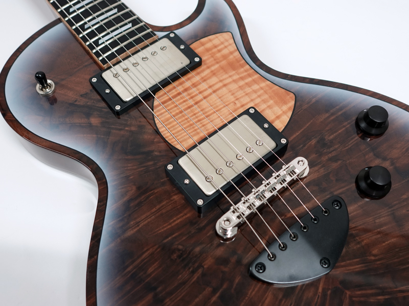 ホンマホネック/エボニー指板との相性もバツグン。このコンビネーションはモダンサウンドにはうってつけですね。キレの芳醇さを併せ持ったトーンとなっております。