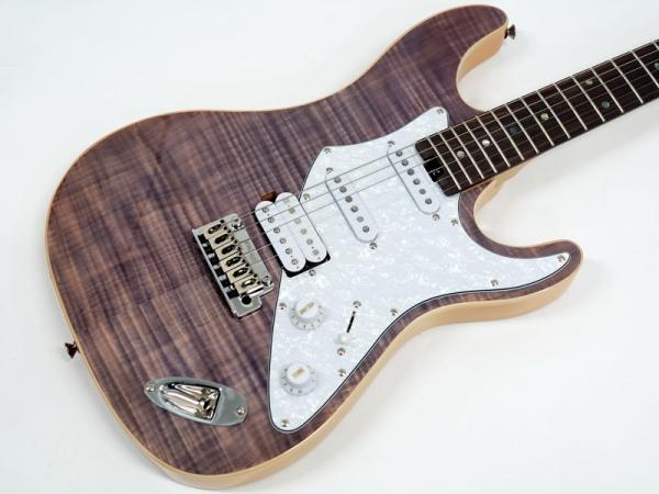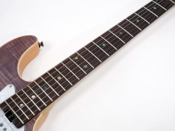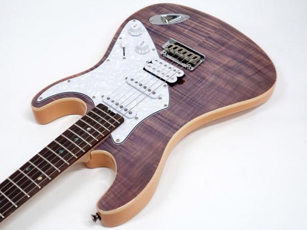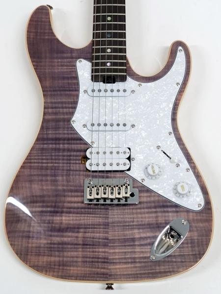 ポプラボディにフレイムメイプルトップ、メイプルネック、ローズウッド指板。