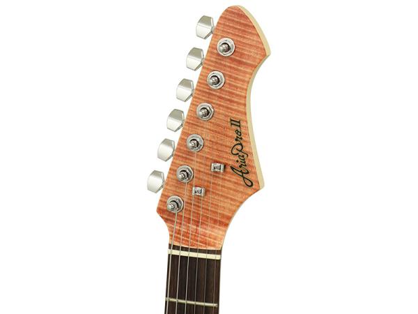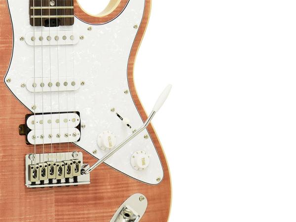 ポプラボディにフレイムメイプルトップ、メイプルネック、ローズウッド指板、基本をしっかり抑えたマテリアルを採用。