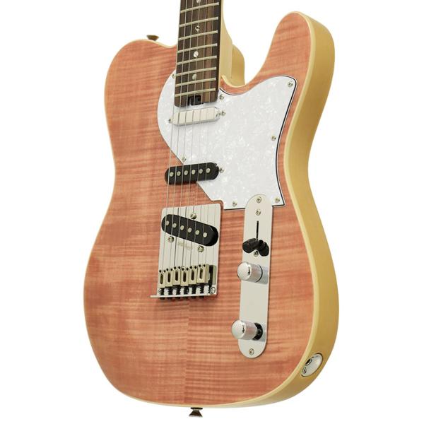 ポプラボディにフレイムメイプルトップ、メイプルネック、ローズウッド指板、上々のマテリアルを採用。ハイポジションの演奏性を高めるヒールレスジョイントやWilkinsonブリッジを装備。