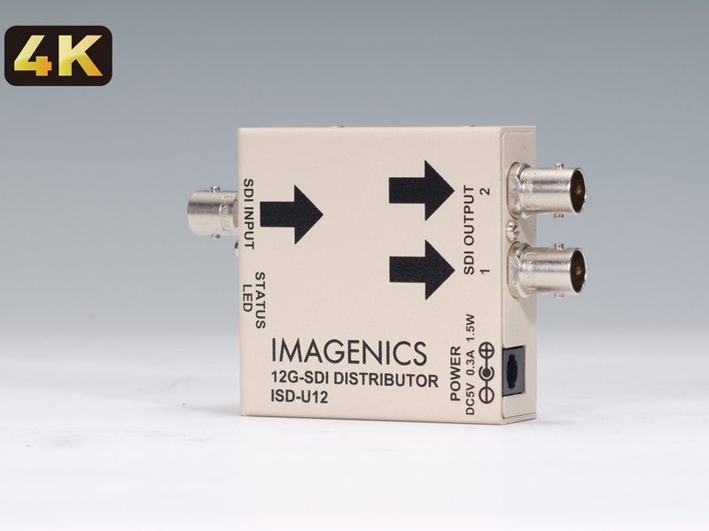 ISD-U12 は、12G-SDI、6G-SDI、3G-SDI、HD-SDI、SD-SDI、DVB-ASIなどの多規格に対応した1入力2出力分配器です。