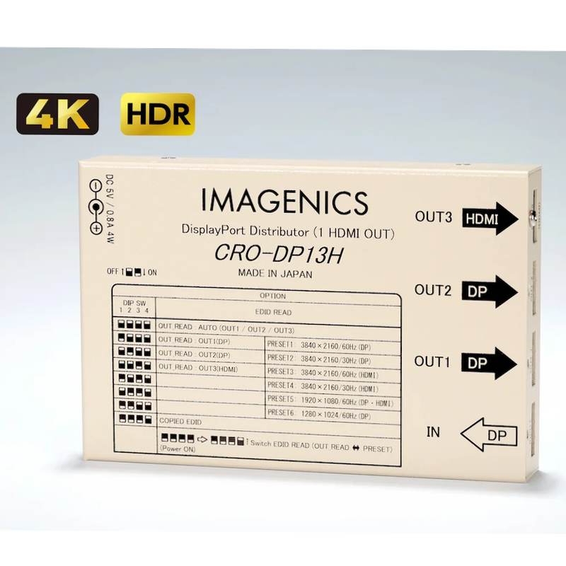 IMAGENICS イメージニクス CRO-DP13H ◆ DisplayPort 1入力3分配器 (EDID、HDMIコンバート)