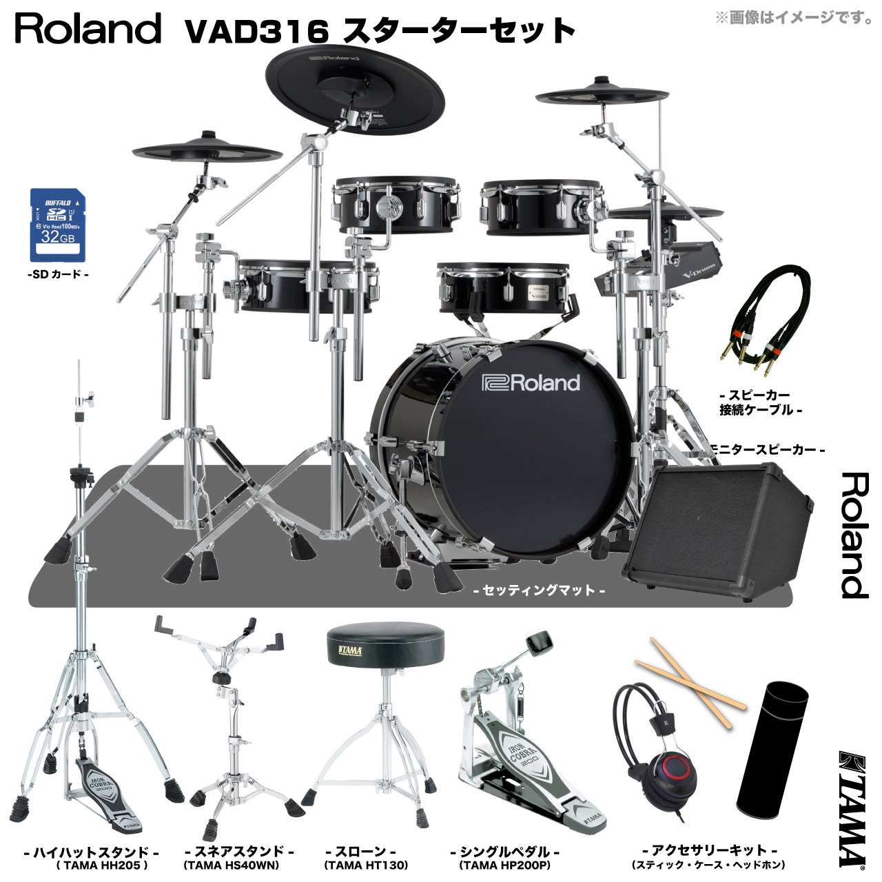 Roland ローランド VAD316 TAMA シングルペダル アンプ付きセット 電子ドラム エレドラ V-Drums Acoustic Design