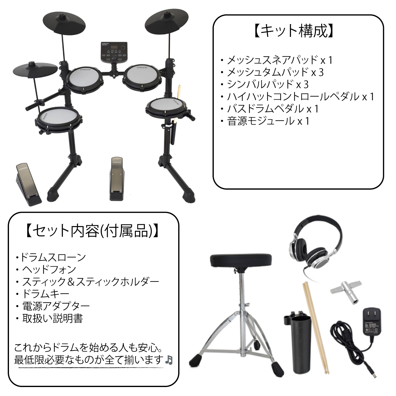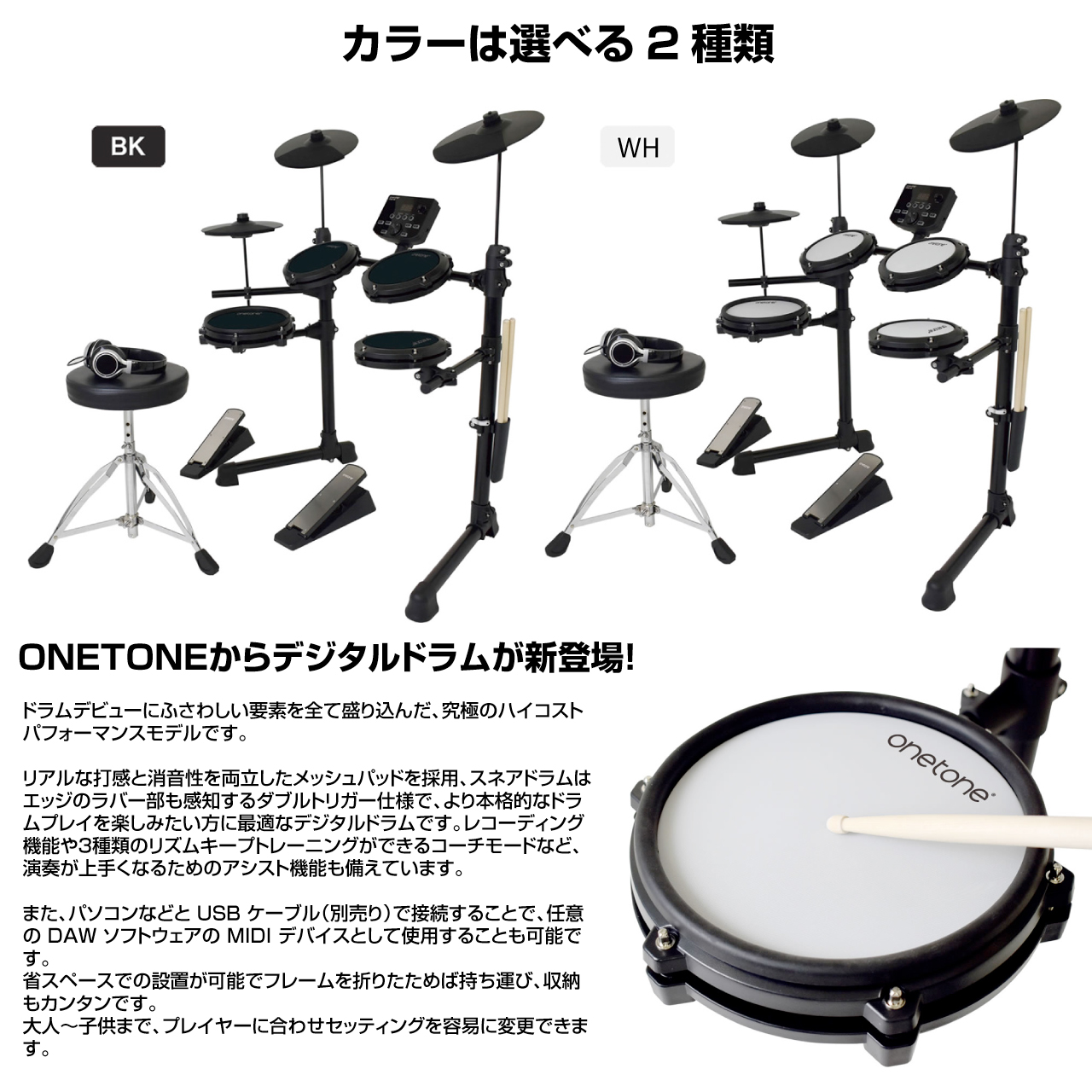 ONETONEからドラムデビューにふさわしい要素を全て盛り込んだ、究極のハイコストパフォーマンスデジタルドラムが新登場!