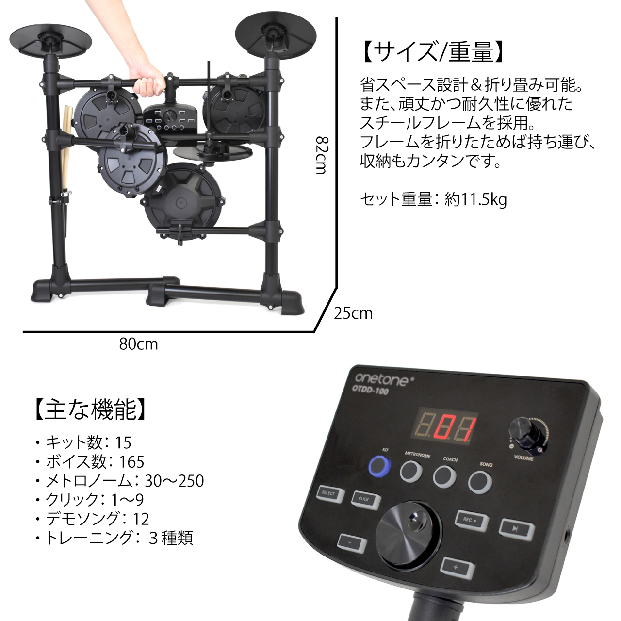 ONETONE ワントーン 電子ドラム メッシュ 安い ドラム OTDD-100 WH バスドラム ランクアップ マット付き アンプ付き