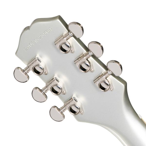 SGスタンダードはプレイヤーにフィットするコンター加工付きのボディ形状を持ち、ダブル・カッタウェイにより22フレット全てのポジションへの容易なアクセスを実現しています。セットネック方式でジョイントされたネックはSGの高いサスティン特性に寄与しています。ネックシェイプはスリム・テーパー Cプロファイルが採用され、素早い滑らかなフィンガリングを可能にしています。ミディアム・ジャンボ・フレットが打たれたローレル指板にはパーロイド素材のディッシュ・インレイが施され、12インチの指板R(ラディアス)採用によりロー・ポジションでのコード・プレイやハイ・ポジションでのベンディングの両方をストレスなく行えます。Grover Rotomaticチューナー、Graph Techナット、Epiphone LockTone Tune-O-Maticブリッジ、Stop Barテイルピース等の採用により、安定したチューニングと正確なイントネーションをギタリストにもたらします。