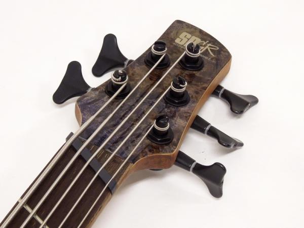エキゾチックなポプラバールトップにオクメバック、間にウォルナットを挟み込んだ3プライのボディにウォルナットと硬質なジャトバの5ピースのSRスリムネック、指板にはパンガパンガを採用します。パンガパンガはタンザニア産のマメ科の木で、見た目や比重はウェンジによく似ています。