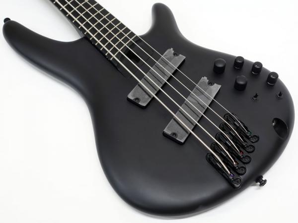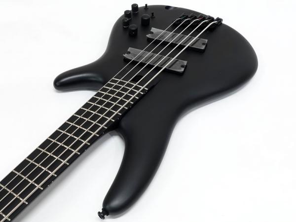 漆黒のマルチスケール5弦です。ネック裏やパーツまで艶消しブラック仕上げ、さらにIbanezロゴまでブラックとこだわりの黒に身を包んだスポット生産モデル!