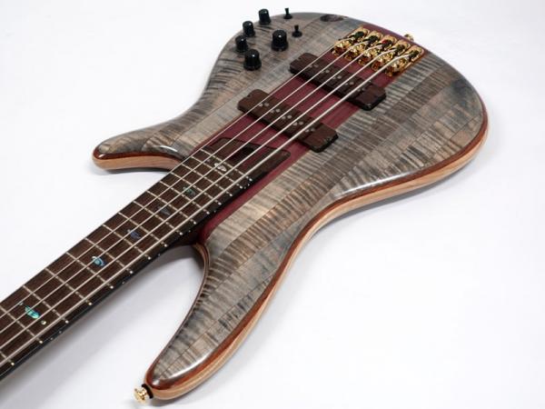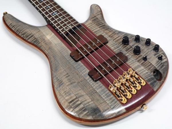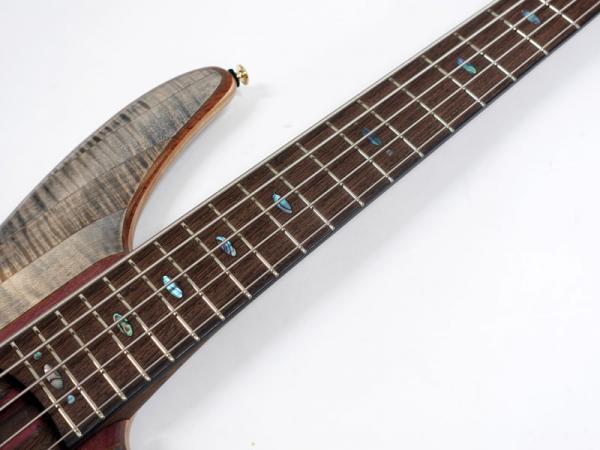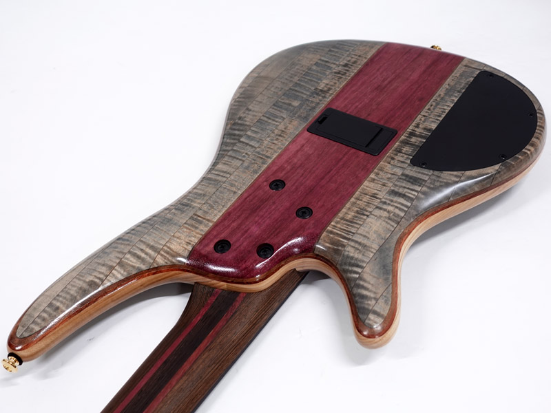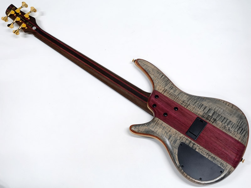 Curly Maple,Walnut,Purpleheart(top) / Walnut / Bubinga / Ash / Bubinga / Walnut /Curly Maple,Walnut,Purpleheart(back)の積層ボディ、指板にはパンガパンガ材にパンガパンガ材、パープルハート材をラミネートした5pcネックに、KTS TITANIUM rodsを採用することで、ネックの剛性とサステインを高めています。