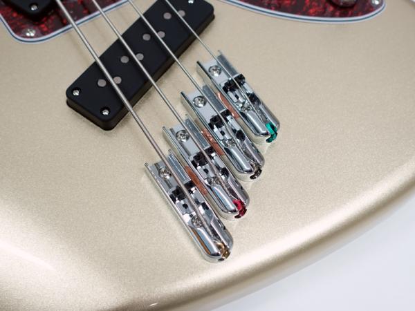 ファンドフレットというと奇抜で少し手の出しにくいイメージがあるかもしれませんが、本機はジャガーベースタイプをもとに設計していることもあり、可愛さとスタンダードなかっこよさを残しつつ、新しいベースとしてアイコンとなるようなデザインとなりました。