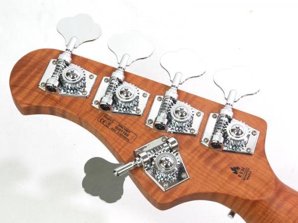 指弾き、ピック弾き、スラップとなんでも来いのジャズベースにバッカス定番のターボスイッチを装備。従来とは一味違う、太くハムバッキング・ピックアップのようなサウンドも作り出します。