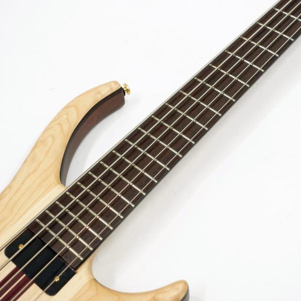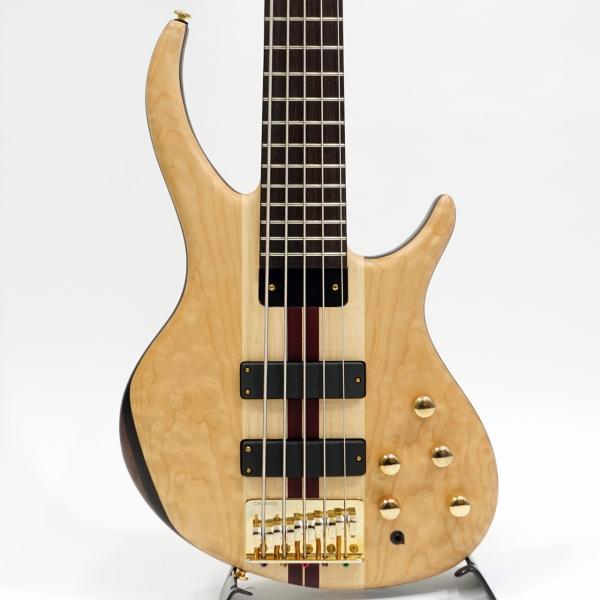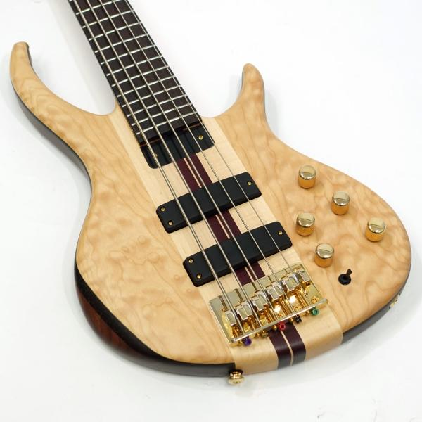本モデルは、そのTobiasが誇るClassic V。プロの現場でも即戦力となる一本で、細部までこだわった設計が魅力です。34インチスケールの5ピース・スルーネック構造に、ハードメイプルとパープルハートのネック、ウォルナットとウェンジ、さらに美しい杢目のキルテッドメイプル・トップを組み合わせたボディは、見た目の美しさと豊かな鳴りを両立。Tobias Asymネック・プロファイルにより手への馴染みも良く、快適な演奏性を実現。