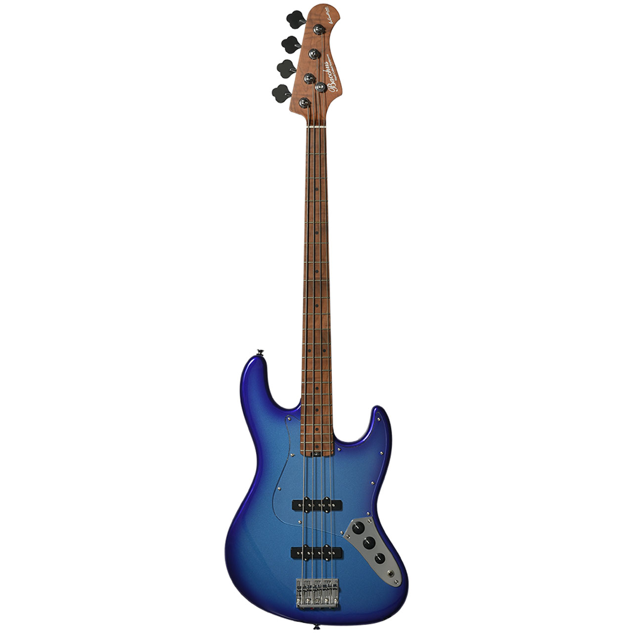 指弾き、ピック弾き、スラップとなんでも来いのジャズベースにバッカス定番のターボスイッチを装備。従来とは一味違う、太くハムバッキング・ピックアップのようなサウンドも作り出します。