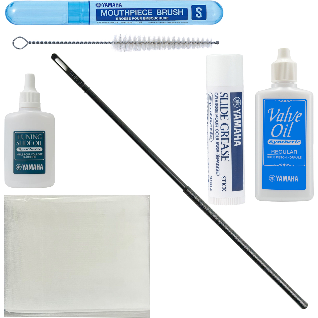 YAMAHA winds accessories care Alto horn ヤマハ お手入れ用品 楽器 メンテナンス お掃除セット内容 ■バルブオイル レギュラー ヤマハ VOR3 60ml ピストン、バルブケーシング用の100%化学合成オイル。吹奏楽で一般的なヤマハのスチューデントモデル(スタンダードモデル)に付属しているオイルがこのバルブオイル「レギュラー」です。ピストンの可動には必須。 ■スライドグリススティック ヤマハ SGK4 容量 5g 100%化学合成のグリス成分により、常に塗りやすく滑らかな抜差動作が得られます。抜差管表面に、安定したグリス皮膜を形成します。また、防錆剤の添加により抜差管を錆から守ります。これがないと管は摩擦で動きません。 ■ガーゼ バラ1枚 60cm×32cm ※ヤマハではありません。 ■クリーニングロッド ヤマハ CRS マウスパイプや抜き差し管の内面クリーニング用に。全長265mm、φ6mm プラスチック製 ■マウスピースブラシS ヤマハ MPBS2 マウスピースのサイズにあったものを基本的に使用します。日々、水でブラッシングし綺麗に水分を取れば良い状態をキープできることでしょう。 ■チューニングスライドオイル ヤマハ TS03 容量 20ml 100% 化学合成 、 例えば 1+3の運指の時など、演奏中に数センチ抜く、トリガー(1番、3番抜差管)に注すオイルです。軽く滑らかなスライド動作が長時間持続。オイル皮膜が長く持続することで、抜差管を錆から守ります。 ※細かい仕様が画像と異なる場合がございます。