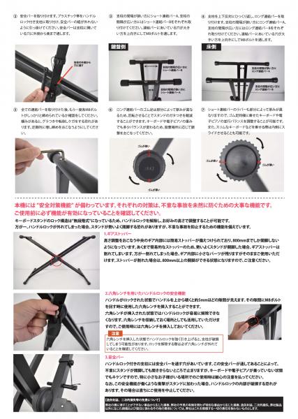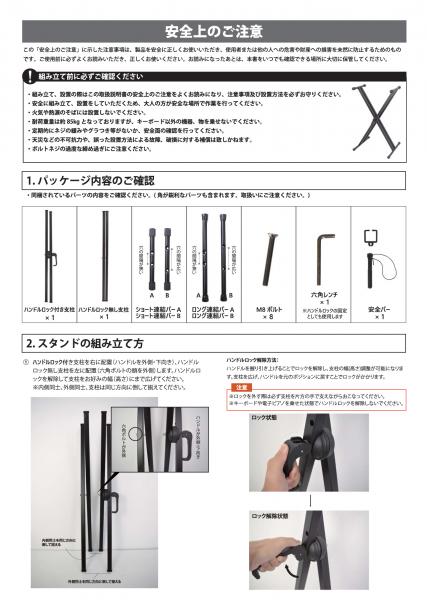 無段階調整ハンドルロック&セーフティー機能付き組み立て式 X字型キーボードスタンド