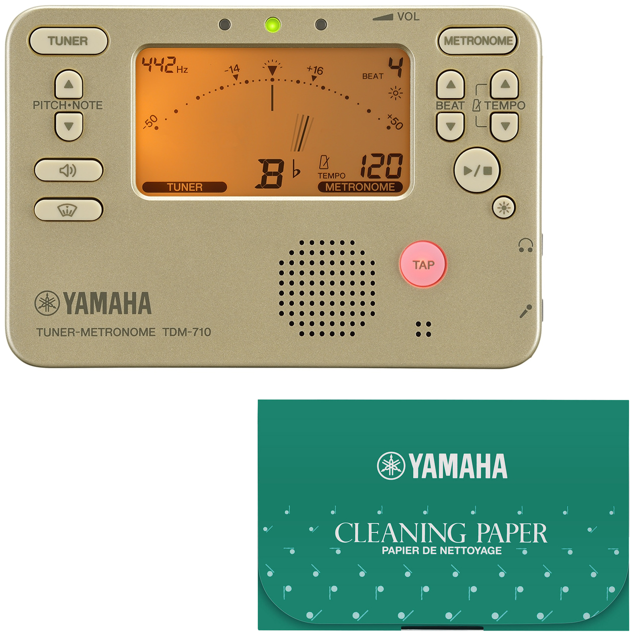 チューナーメトロノームと、ヤマハ クリーニングペーパー CP3 70枚