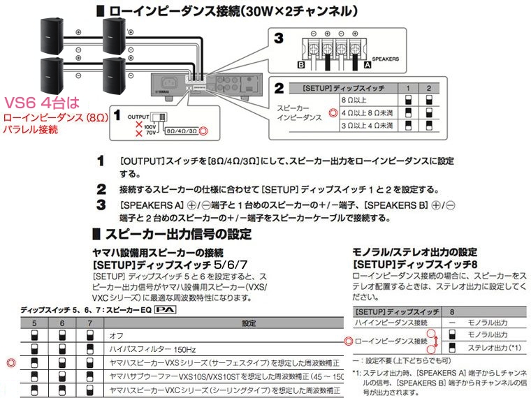 スピーカー出力に関してはYAMAHA MA-2030aと一緒の機能を備えています。