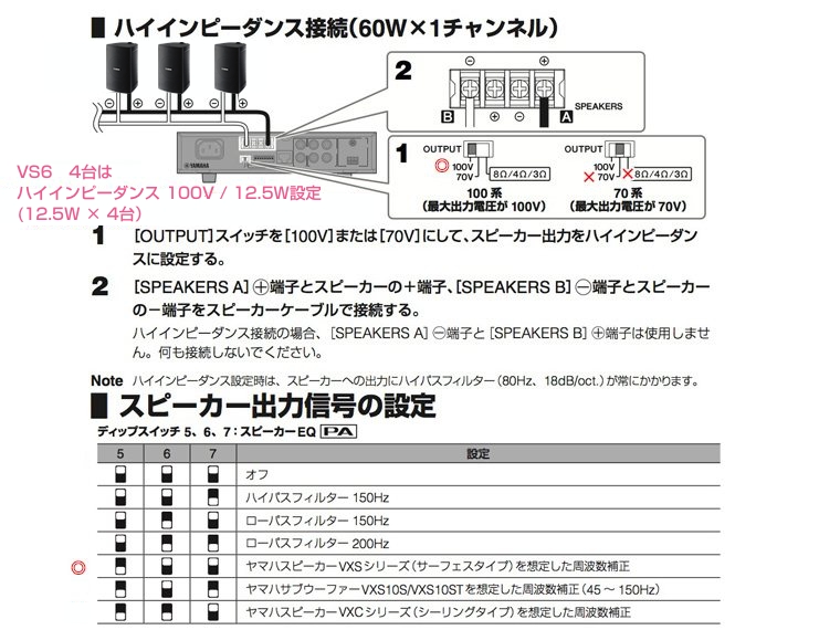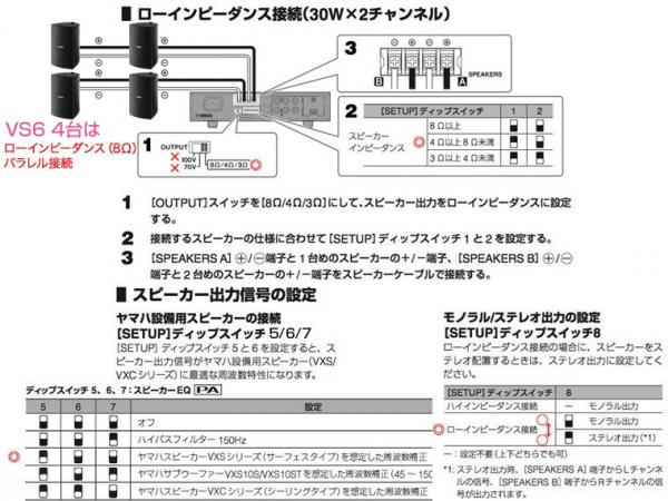 ◆ YAMAHA ( ヤマハ ) VS6 ブラック 2ペア(4台) + PA2030a 小規模店舗 BGMセット