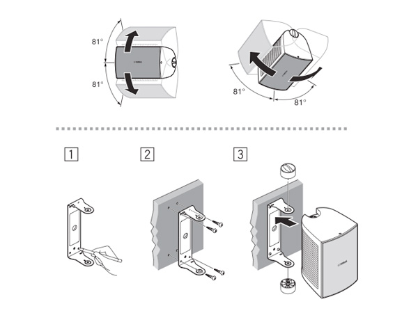 A. 付属の取付金具を使って、壁や天井にスピーカーを取り付けることが可能です。