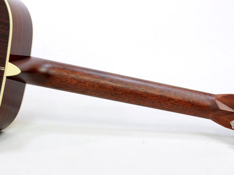 44.45mmのナット幅も握り易く、太めの三角ネックとは違いますので、手が小さな方にも演奏し易いよう工夫がされています。スキャロップのブレーシングになりましたので、指弾きでも非常に反応よく立ち上がり、フィンガーによるより繊細な演奏にもマッチするようになりました。