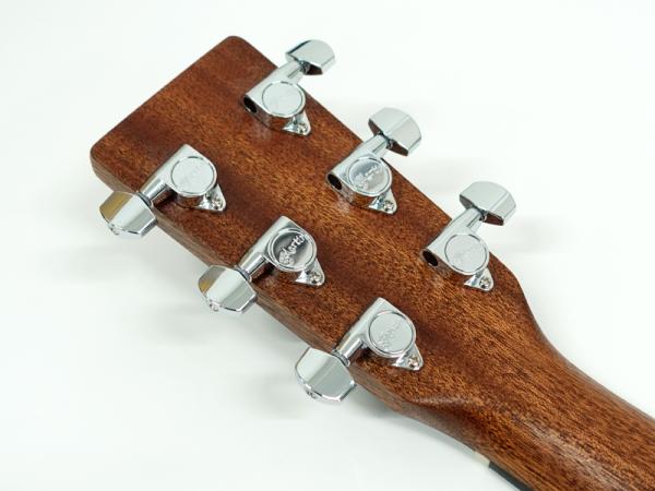 またサウンドホール内にバックライト付きチューナーが搭載されており、構えたまま視線を落とすだけで確認の出来る視認性の良いチューナーで使い勝手の良い一本。