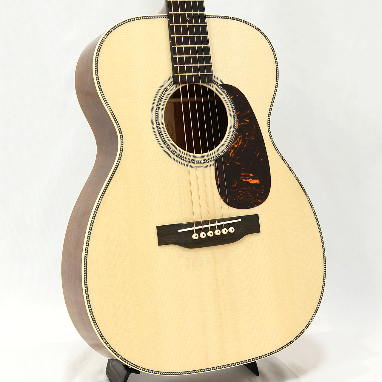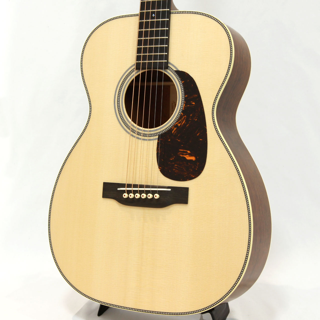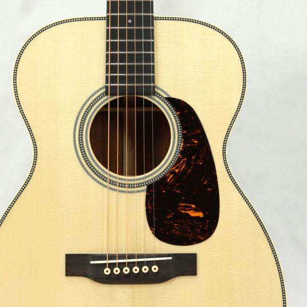 基本スペックは小振りで抱えやすい00スタイル。トップ材には純白のイタリアンアルパイン・スプルースをチョイス。このアルパインスプルースは非常に滑らかで細やかな倍音が出るのが特徴。硬すぎずしなやかな弾力を持ち合わせておりますので、マーチンらしい甘く色香ある音色が楽しめます。