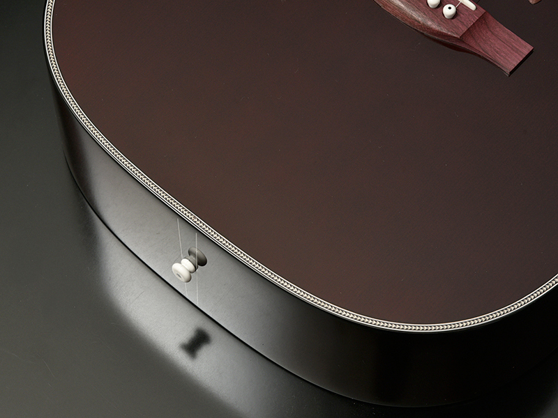 そこでスケールを645mmという、いわゆるロングスケールにして弦のテンション感や鳴りを伝統的なドレッドノートに近づけました。