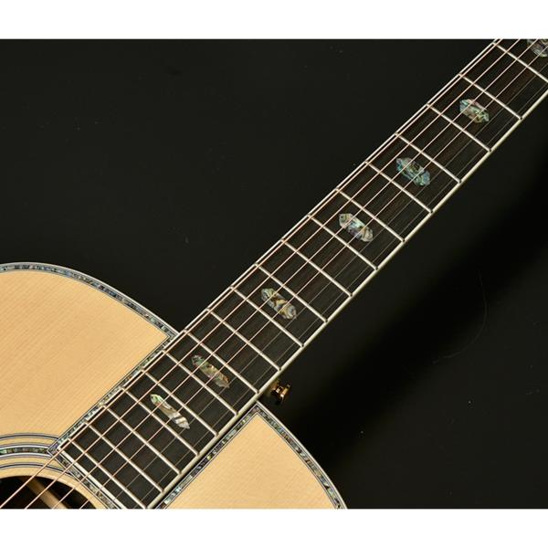 ボディサイドバック材には複雑な杢理が特徴的なジリコテを採用。アバロン貝の装飾と相まって高級感が漂う仕上がりです。