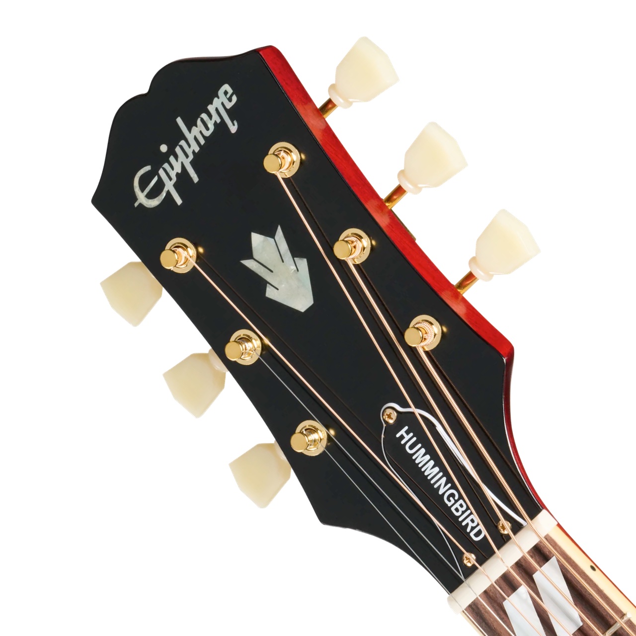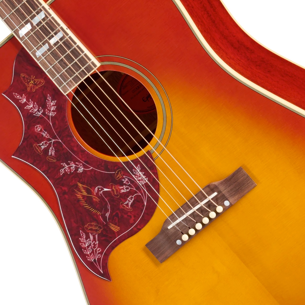 1960年の登場以来、様々な音楽ジャンルのプレイヤーに愛されてきた象徴的なギブソン ハミングバード・アコースティックギターをベースに、ハミングバードは、スクエアショルダー・ドレッドノート・ボディを採用。