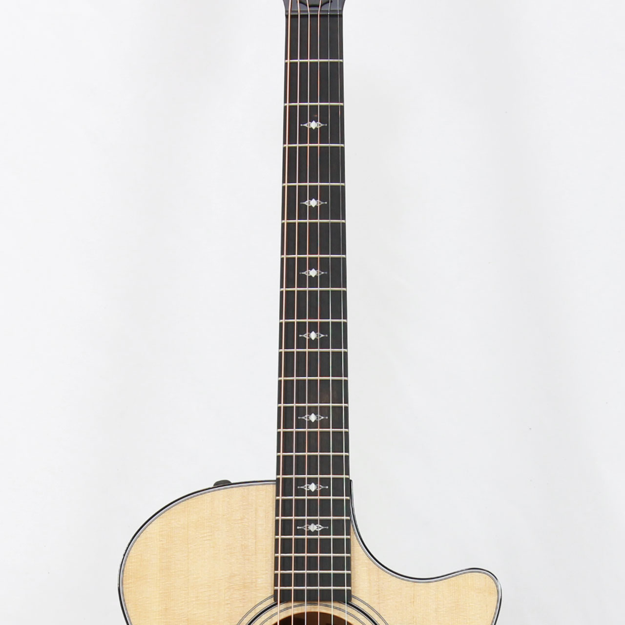 新たにデザインされたインレイやしっかり黒いエボニー指板で高級感が増しています。Vブレーシングの採用によってプレーン弦をはじめとする高音域が良く響き、一音一音が良く伸びてサスティーンの美しさと生鳴りの豊かさを十分に感じて頂けます。ストロークでもしっかり音が前に飛び出していくように鳴り、各弦のサウンドバランスも良く、ジャンルを選ばずお使いいただける良質なサウンドです。