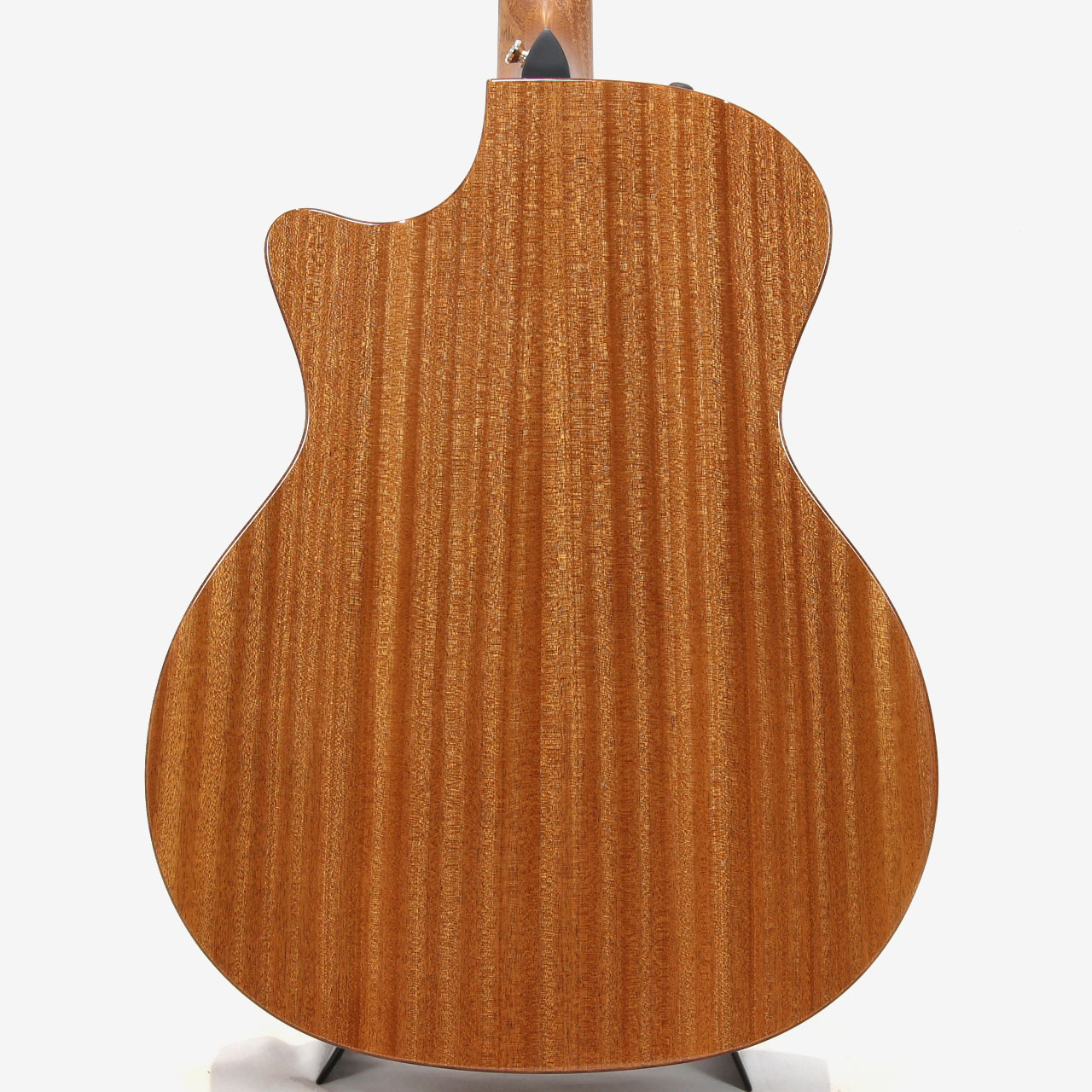 人気のオーディトリアム・ボデイにカッタウェイを施し、トップ材にトリファイド・スプルース材単板、サイド&バック材にサペリの単板を用いた本格派モデルです。