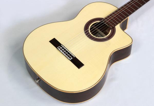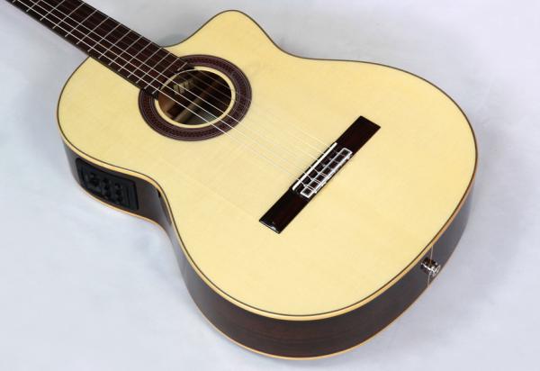 ソリッドヨーロピアンスプルースをトップに、ソリッドインディアンローズウッドをバック&サイドに用いた大人気エレガット。