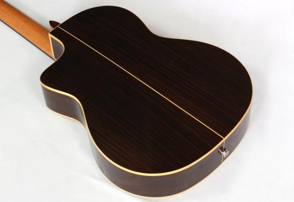 GK Studio Negraは、姉妹モデルであるGK Studio (GKスタジオ)と同じく、ソリッドヨーロピアンスプルースをトップに使用していますが、より低音の鳴りと力強い音色を出すためにバック&サイドにインディアンローズウッドを使用。
