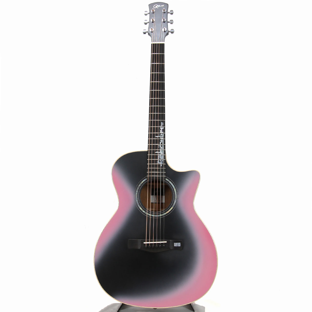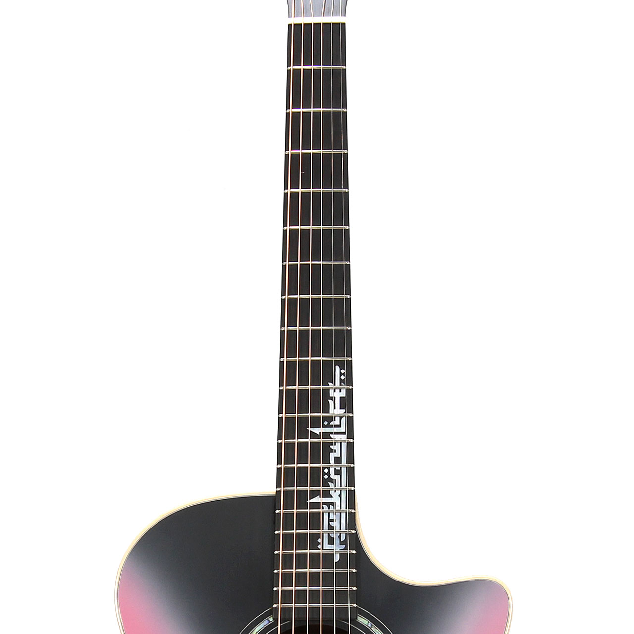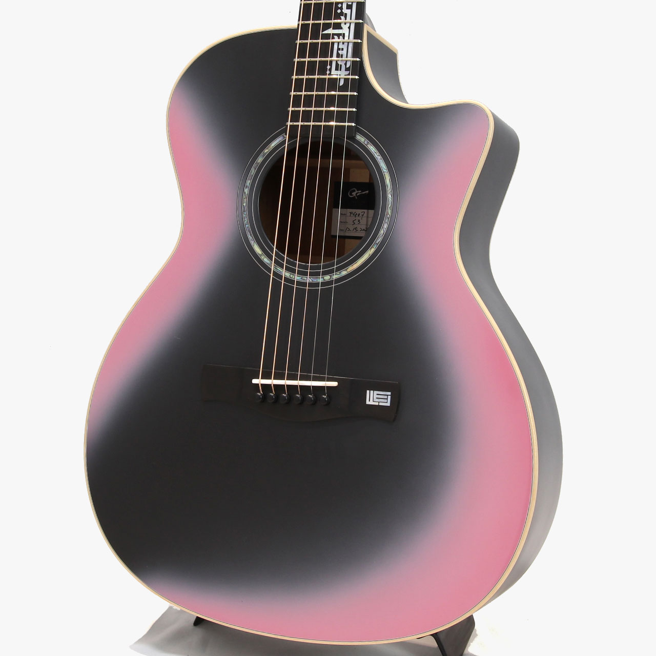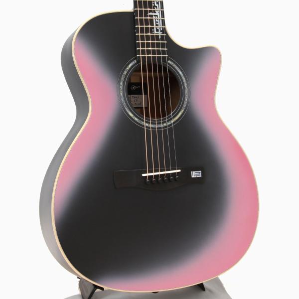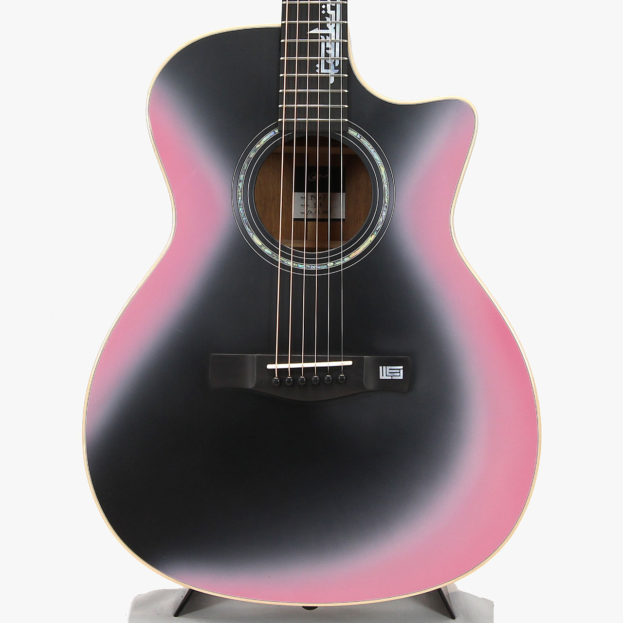 ボディのブラックはマット加⼯で統⼀され、それを囲うように曲線に沿ってピンクのグラデーションが溶け込むカラーリング。また、ピンク部分のみにツヤ出し加⼯が施されており、これがマットブラックと相反するコントラストを⽣み出し、プレイヤーの個性をさらに引き⽴てる唯⼀無⼆なギターへと昇華させます。