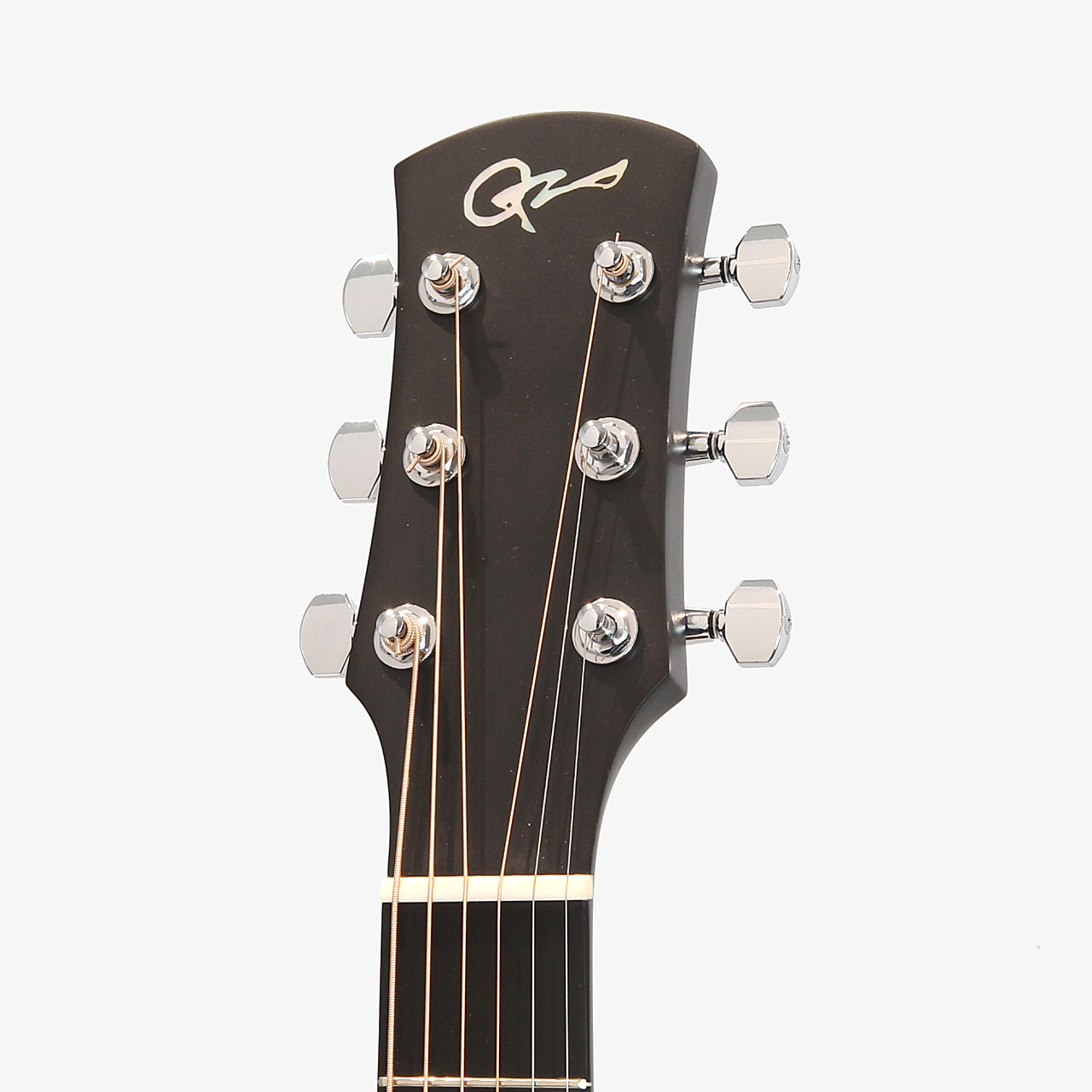 ボディの形状はOMタイプ‧バックコンター付、加えてナット幅は43mmと、⽐較的⼩回りの効くサイズ感なので、初⼼者から上級者まで幅広く活躍できる⼀本です。トップ材はシトカスプルース単板、サイドバック材はアフリカンマホガニー単板を使⽤しております。