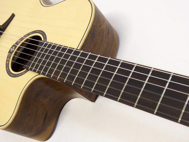 AAグレードのスプルース単板トップのレスポンスの良い響き、カッタウェィ仕様でフィッシュマンのプリアンプ搭載、宅録やストリートでも使えます。