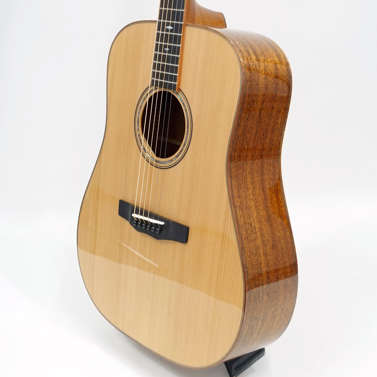 Japan Forestシリーズのこのモデル、宮崎県産の地杉(ジスギ)とアフリカンマホガニーの組み合わせによる特別仕様。煌びやかな高音と柔らかな中域をもつ地杉とマホガニーの組み合わせにより、全体を包み込むようなまろやかで優しい音色が特徴です。