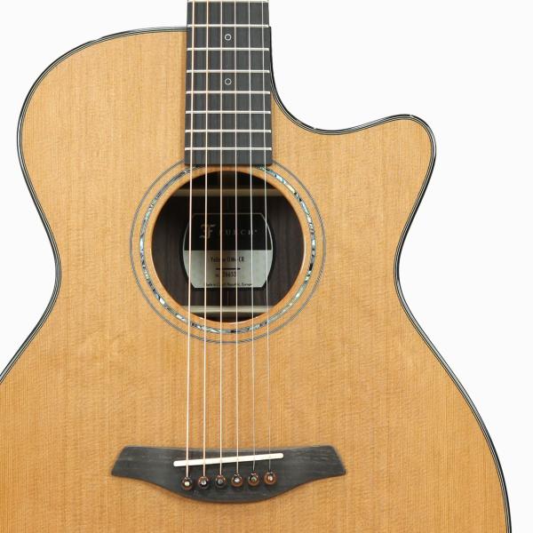 トップ材にはフォルヒらしい落ち着いた音色のシダー材、サイドバックはインディアンローズウッドの組み合わせで、全域でクリアで柔らかなサウンドを、素早いレスポンスと繊細なフィンガーニュアンスでコントロール可能となっており、元気でダイナミックなサウンドのアメリカ製のギターとは違う、ヨーロピアンなフォルヒギターならではの落ち着きが十二分に感じられる仕上がりとなっております。