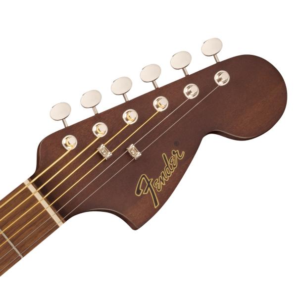 オールラミネートのサペリ材を使用したMonterey Standardの快適なミッドサイズコンサートボディは、深く豊かな木目が特徴で、様々な演奏スタイルに適した温かくバランスのとれた音色を奏でます。弾きやすいナトーネックは、スリムなCシェイプで指板エッジは丁寧なロールオフ加工を施しているため弾き心地が良く、弦のテンションが低い24.75インチのショートスケール、6インラインヘッドストックなど、70年代のフェンダーエレキギターのDNAから生まれた独特のルックスを継承しています。ブリッジの弦間は狭く、手の小さい方やピッキング時の疲労を軽減したい方に最適なモデルです。また、シルキーなサテンウレタンフィニッシュ、スムーズで正確なチューニングを可能にするヴィンテージスタイルのチューニングマシン、繊細なハーモニクスを生み出すGraphTech® NuBone®ナットとサドルなど、細部にまでこだわりが詰まっています。さらに、アンプやレコーディング機器に接続した際に、ギター本来のサウンドを忠実に再現するFender®プリアンプシステムを搭載し、その場でチューニングを行えるチューナーも内蔵しています。