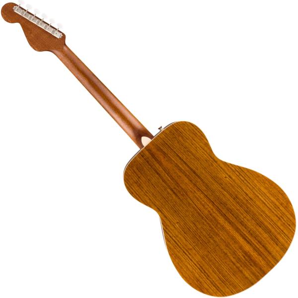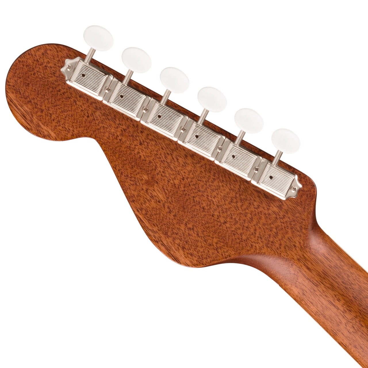 ネックには人間工学に基づいたモダンな"V"シェイプを採用し、温かみのあるトーンレスポンスを生み出す25インチのスケール長、ティルトバック式6インラインヘッドストック、メイプルヘッドキャップなど、フェンダーのエレキギターDNAから生まれた独特のルックスを備えています。バインディングされたオバンコール指板には当時の雰囲気を再現するパーロイドのブロックインレイが施されています。スムーズで正確なチューニングを可能にするヴィンテージスタイルのチューニングマシン、優れたハーモニクスを生み出すボーンナットとサドルなどのディテールも特徴です。