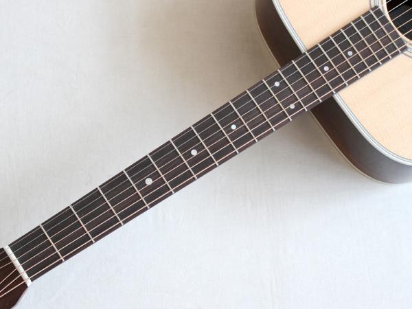 豊かな倍音が魅力のドレッドノートボディーを基に、スプルース材単板トップ、ローズウッド材単坂サイド&バック、マホガニー材ネック、エボニー材指板&駒、42mmナット幅、645mmスケールと、トラディショナルなマーチンスタイルです。
