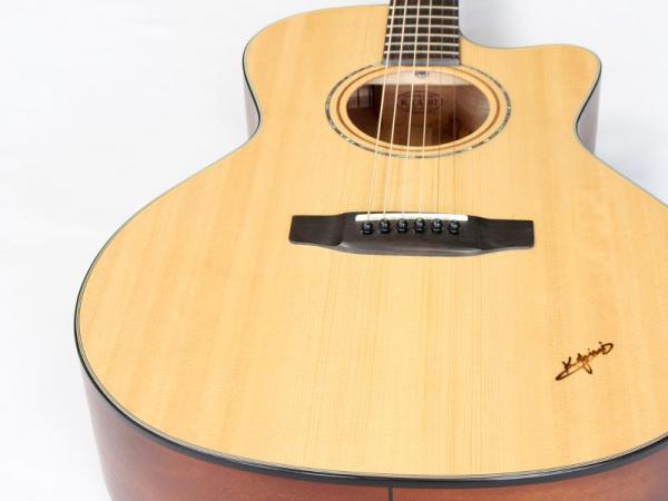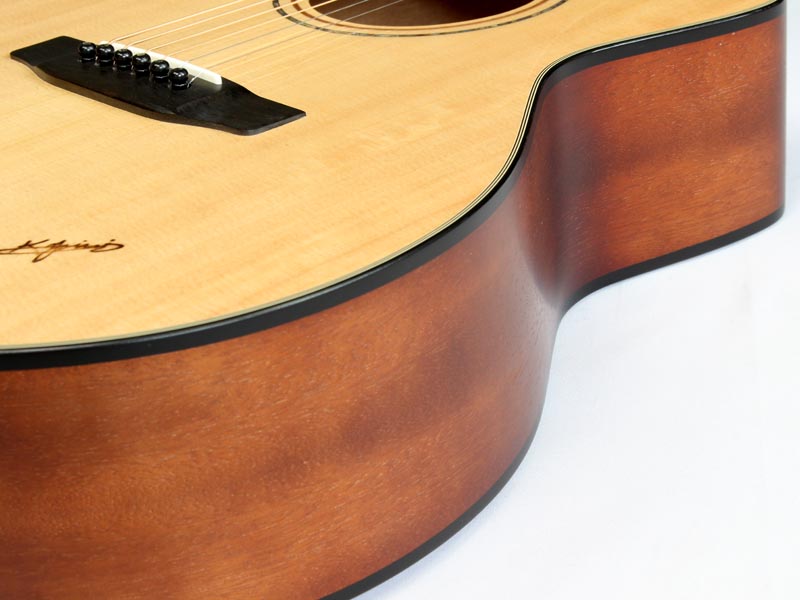 ボディシェイプは80周年モデルとして限定生産された「TRINITY」に使用された人気シェイプを元にしており、スプルース材単板トップ、マホガニー材サイド&バック、マホガニー材ネック、エボニー指板&駒、42mmナット幅、635mmスケールとなっており、弾き語りに大変相性の良い乾いた軽快なサウンドで、シンガーソングライターにバッチリのモデルです。