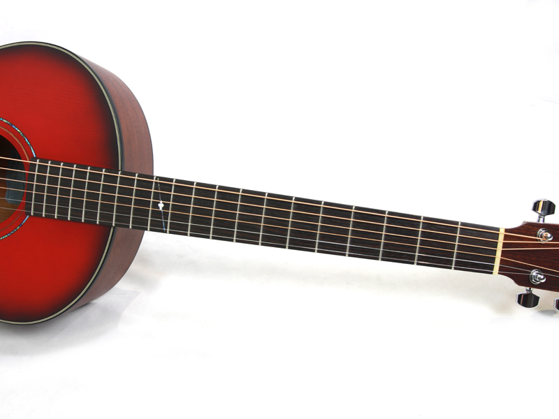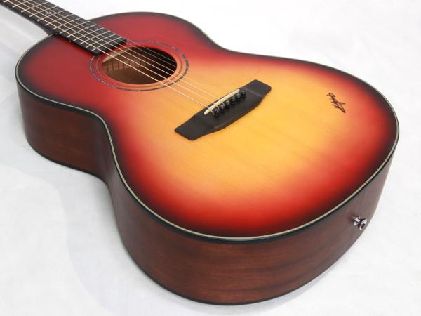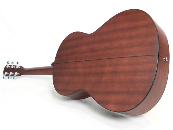 スペックはスプルース材単板トップ、マホガニー材サイド&バック、マホガニー材ネック、エボニー材指板&ブリッジ、42mmナット幅、クリアピックガード。優しく歯切れ良い明るめのサウンドは弾き語りや歌モノのバックに相性が良く、使い勝手の良さが特徴です。