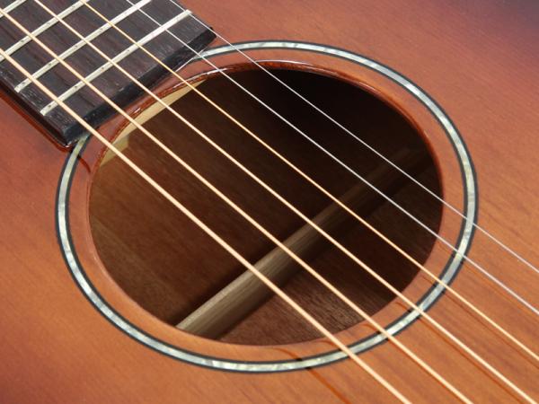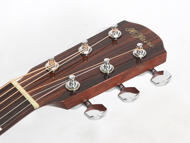 深みのあるボディ・カラーに、シングルラインのサウンドホール・ロゼッタが映えます。シンプルで飽きが来ないだけでなく、オリジナリティもしっかり主張するNewデザイン。エントリー・モデルであっても、1本1本K.Yairiの職人の手作業で、手間を惜しまず丹精こめて造られています。
