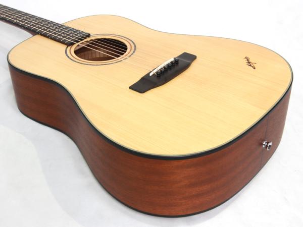 スペックは、スプルース材単板トップ、マホガニー材サイド&バック、マホガニー材ネック、 ローズウッド指板&駒、42mmナット幅、弾き語りに大変相性の良い乾いた軽快なサウンドで、シンガーソングライターに大変人気のモデルです。